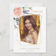 Front: a faux gold geometric photo frame. Decorated with a rose gold rose, flower and lavender. Personalise and add a photo, your name and date.