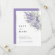 A romantic lavender watercolor floral save the date card featuring a photo back design to showcase your engagement or couple portrait.