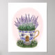 Lovely lavender pops gleefully from the top of a delft blue teacup, fairy tale, home. Original illustration by Noël Snow.