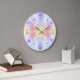 Lavender Teal Yellow Orange Geometric with Name Large Clock