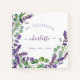 Lavender flowers and eucalyptus greenery. Add your name, and text. The name is written with a hand lettered style script with swashes.