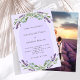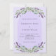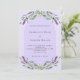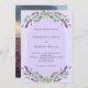 A violet background decorated with purple lavender flowers, eucalyptus greenery and an arch frame. Personalise and your names and details.
