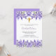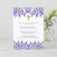 A white background decorated with watercolored lavender flowers and a golden cross. Personalise and a name and details.