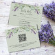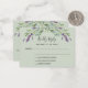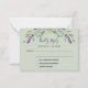 A green background, black text. Decorated with lavender florals and eucalyptus greenery. Personalise and add a reply by date.