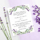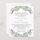 A white background decorated with lavender flowers and eucalyptus greenery. Personalise and your names and details.