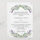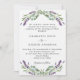 A white background decorated with lavender flowers and eucalyptus greenery. Personalise and your names and details.