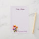 Colourful stationary done in a pale lavender, with watercolor artwork of a bunch of wild flowers, on the bottom. Personalise the text, on the top and bottom, to read what you want. Pretty stationery for yourself or as a nice little gift idea to her.
