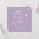 Announce your engagement with these wedding save the date templates. This design features lavender line art in with a mix of classic and script typography in white over an purple background. All the colours can be customised to suite your wedding colour scheme. Use the template fields to personalise with your name and wedding date. Order printed cards or a digital save the date download. To see the matching wedding stationery suite visit www.zazzle.com/dotellabelle