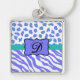 You will love this trendy and sophisticated combination of zebra skin and leopard or cheetah skin personalised with your monogram initial. This stylish lavender periwinkle and white with turquoise teal zebra and leopard print pattern a popular colour choice. A lavender purple emblem on a turquoise teal or aqua blue strip creates a personalisation area with your monogram. This is fully customisable. This design pattern is available on other products and in other colour combinations in this store.