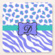 Enjoy entertaining or use for yourself to protect your furniture from drinks with these coasters personalised with your monogram initial. You will love this sophisticated and stylish combination of the popular wild african animal zebra stripe and leopard or cheetah skin design. This trendy periwinkle lavender purple and white zebra and leopard print pattern is available in several colour combinations. A periwinkle lavender emblem on a turquoise teal blue or aqua stripe creates a personalisation area for your monogram or name. This is fully customisable and is available on many coordinating products in this store.
