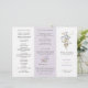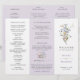 This elegant lavender tri-fold wedding program features delicate wildflower blooms in soft pastel tones paired with a refined botanical layout. The muted purple background and airy meadow florals create a romantic yet minimalist design, perfect for chic garden-inspired celebrations.