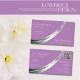 Very elegant lavender coloured business card design with a noble shimmery silver decor.