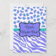 Customise this colourful and stylish sophisticated invitation to celebrate with a Girls Night Out party. The design features periwinkle lavender purple and white zebra stripes and leopard or cheetah skins combined for a trendy and modern design. A lavender purple emblem outlined in black on a turquoise teal blue bar and creates a personalisation area, with the customisable words "Girls Night Out" that can be customised to other words. The back of the invitation includes fields for all of your information for your party. You can easily change and delete fields as needed. Colours are periwinkle lavender, white, turquoise teal blue, black, and lime green. Wild animal skins for graphic design is a hot art and design trend, and is extremely popular from fashion to home decor. This sophisticated zebra and leopard print collection is one of several colour combinations available for your choice of invitations and coordinates with other products for a stylish party.