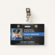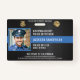 The customizable police department ID badge features a police emblem at the top that can be customized to your department as well as a place for the state logo as well. Customize with the officer's photo on the left. Beside the photo, the officer’s name, badge number, rank, and department are displayed. Add your own barcode to the back of the card, along with issue and expiration dates, and description of the officer, captain, chief, or office employee.