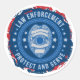 Want a great way to support your police department? Support law enforcement with this original Law Enforcement Seal of Safety sticker! Big police badge in the centre surrounded by stars with a round blue and red grunge background. For police,cops, family, friends and police supporters!