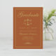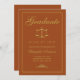 Send your family and friends an elegant graduation announcement featuring an orange background with faux gold calligraphy and gold Scales of Justice bordered by a thin gold frame for law degrees. Personalise with your college graduation details. Designed by Susan Coffey.