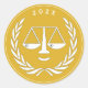 Lawyer law school graduate envelope seals, gift stickers or party favour labels, featuring creative Scales of Justice personified on gold background. Edit text to change year of graduation or otherwise customise.