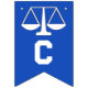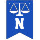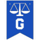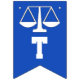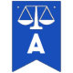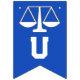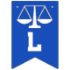 Lawyer law school graduation congratulations party decoration, featuring scales of justice on blue background.