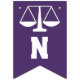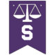 Law school graduation congratulations party decor featuring scales of justice on a purple background.
