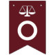 Creative lawyer congratulations party decor featuring scales of justice on maroon background for law school grad.