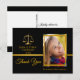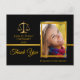 Elegant front photo black and gold tone, class year graduation law school and legal specialties "Thank You" postcards. Original design by Holiday Hearts Designs (rights reserved).