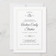 A faux-embossed triple frame graduation party invitation for a law school grad that is simple but sophisticated, timeless and elegant. Please note that the embossing in the frames is created through an image and no actual embossing will appear on the card. At the top, a stylised vector illustration of the scales of justice showcases the graduation year. Customise every line of text. Black and white.