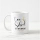 Law school graduate mug featuring the scales of justice, the funny saying "law school survivor", and the class year.