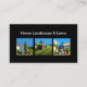 Unique triple graphic Landscaping and lawn service business cards designed with a graphic of a landscaper planting a shrub, planting a bush, and mowing the lawn.