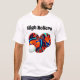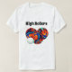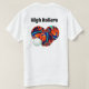 Pictured are red and aqua lawn bowls with jack and the words high rollers