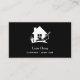 A black background, with a white house and lawn mower. Personalise and add your business name and a text on front.