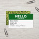 Lawn care business cards designed to mimic the simple look of a hello introduction card and graphic of lawn grass on the flip side in this simple editable online template you can customise your way.