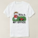 An adorable white cat wearing a red shirt and a hat pushing a lawn mower with text that says "I'll Be in My Office" for gardening lover