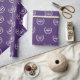 Creative lawyer gift wrap featuring happy scales of justice pattern on a purple background.