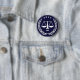 Lawyer or law school graduate cartoon pin, featuring the Scales of Justice. Edit text to add year.