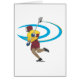 Simple lacrosse design with running lacrosse player in red and yellow lacrosse uniform in helmet, pads and lacrosse stick! Blue swirl background! Great LAX shirts and gifts!