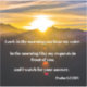 This gorgeous christian vinyl sticker shows a sunrise over mountains under the white words of the Bible verse of Psalm 5:3. "Lord, in the morning you hear my voice. In the morning I lay my requests in front of you, and I wait for your answer."