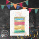 Purchase several of these unique greeting cards to be ready to celebrate any happy occasion. This beautifully crafted card, features a watercolor cake illustration accented with shimmering gold layers and playful confetti. The vibrant artwork brings a fresh, artistic flair, making it more than just a card—it’s a keepsake. Perfect for anyone who appreciates original designs in cheerful colours. this card captures the joy of a celebration.