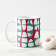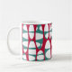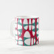 This mug design has two layers of white ovals on a field of teal and beet.