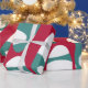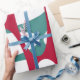 This wrapping paper design has two layers of white ovals on a field of teal and beet.