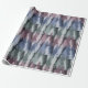 An illustration of layered pine trees arranged in horizontal bands, featuring cool pink, blue, and grey shades.