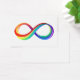 Bright symbol of infinity from plastic layers of red, yellow, green, turquoise, blue and purple saturated colours on white background.
