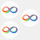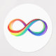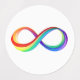 Bright symbol of infinity from plastic layers of red, yellow, green, turquoise, blue and purple saturated colours on white background.