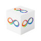 Bright symbol of infinity from plastic layers of red, yellow, green, turquoise, blue and purple saturated colours on white background.