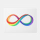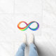 Bright symbol of infinity from plastic layers of red, yellow, green, turquoise, blue and purple saturated colours on white background.