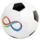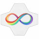 Bright symbol of infinity from plastic layers of red, yellow, green, turquoise, blue and purple saturated colours on white background.