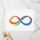 Bright symbol of infinity from plastic layers of red, yellow, green, turquoise, blue and purple saturated colours on white background.