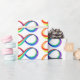 Bright symbol of infinity from plastic layers of red, yellow, green, turquoise, blue and purple saturated colours on white background.