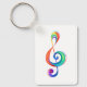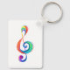 Musical key drawn from multicolored layers of rainbow colours on white background.