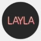 Layla name in glowing neon lights novelty classic round sticker
