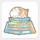 Lazy Cat on Books – Cute Cozy Illustration Square Sticker